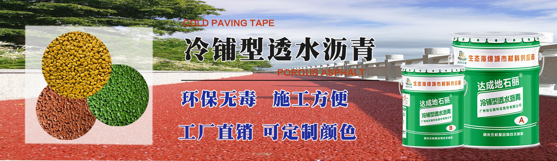 搜索關鍵詞: 彩色透水混凝土 冷鋪型透水瀝青 透水膠粘石地坪 藝術壓花地坪 天然露骨料地坪 彩色陶瓷顆粒防滑路面